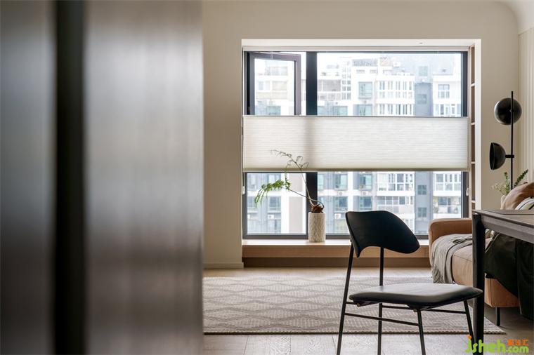 書房做推拉門入墻式,兒童房門做對開門,既可以讓兩邊空間相互獨立,又能在打開時擴大空間感,增加趣味性也增加過道采光。