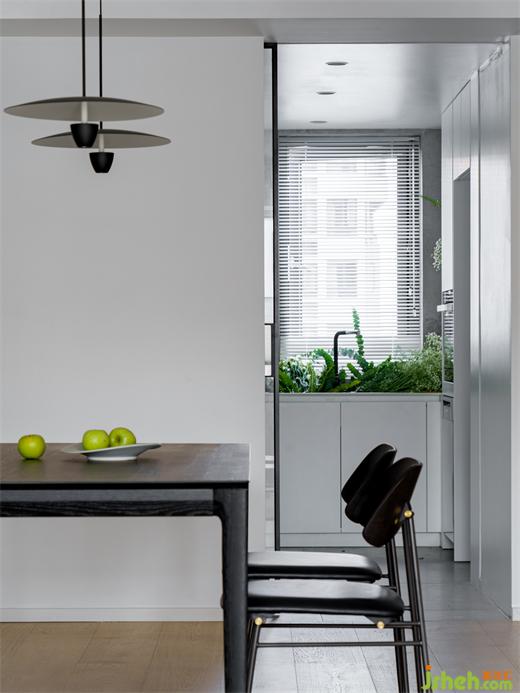 黑色餐桌與原木色地板,海境界家裝設計既不會讓空間產(chǎn)生壓抑之感,又不會讓配色過于單調(diào)