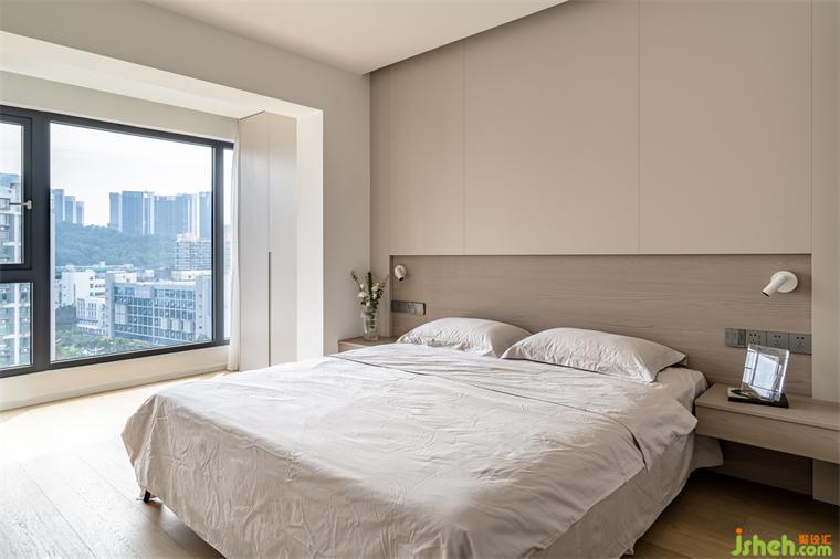 素凈的墻壁,低調(diào)溫馨的配色,使臥室也有了柔軟的感受