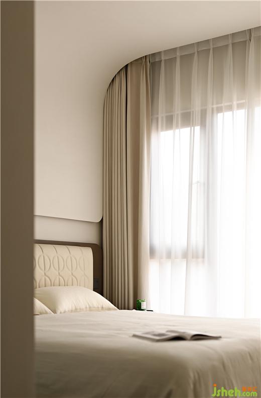 客廳區(qū)域,墻面微水泥背景延用餐廳背景序列式的排列設(shè)計(jì)手法,也稱斯卡帕似的設(shè)計(jì)手法,宛如生活一切有序卻驚喜的進(jìn)行,沙發(fā)背景也設(shè)計(jì)了線性燈脫離墻面與天花之間的硬收口。我們希望用簡(jiǎn)潔溫暖的設(shè)計(jì)語(yǔ)言,為屋主創(chuàng)造出理性實(shí)用和自然美學(xué)的相融空間。