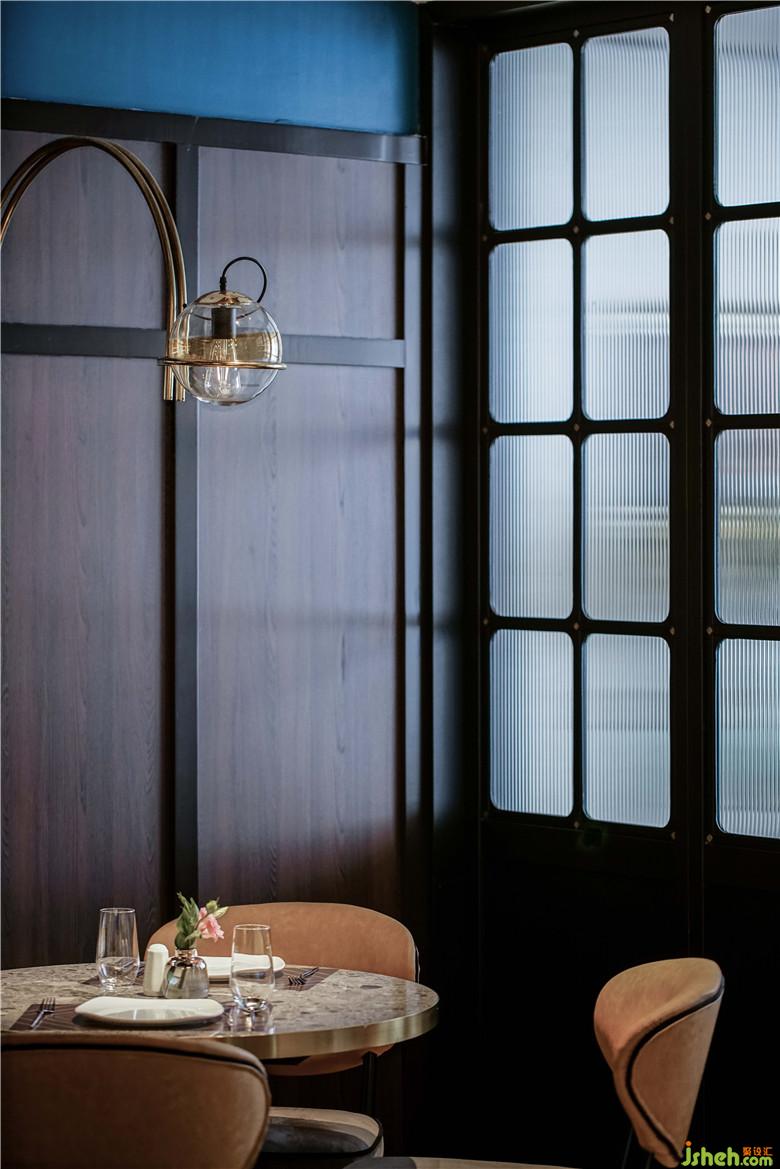整體色調(diào)以深色實木板與“Turquorise水鴨藍”肌理藝術(shù)漆墻面產(chǎn)生的色彩碰撞來呼應餐廳主題。cheers旨在傳達一種更深層次的情感表達。設計師希望用靈動的色彩拉開空間的維度,窺探人們最真實的自我?!癟urquorise”水鴨藍色如水,無言又無所不在,溫柔浪漫但無所畏懼,猶如化解一切,包容一切,綿延不絕,是一種帶有未來的卻又不失懷舊之味的顏色。