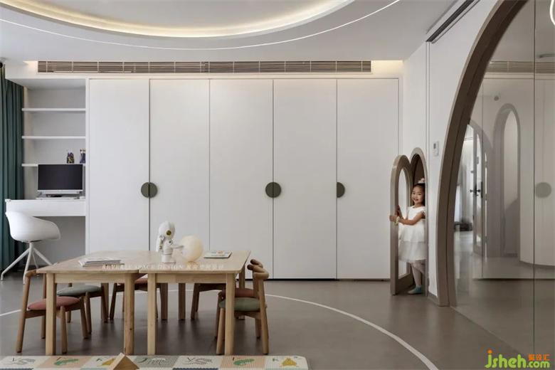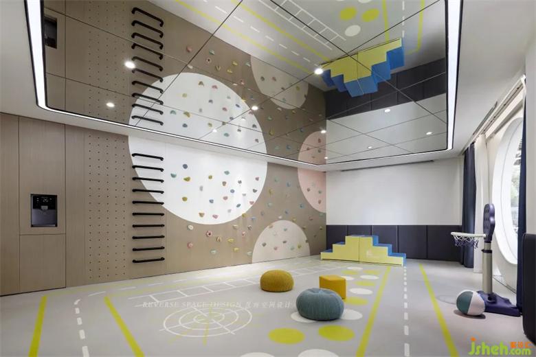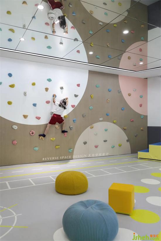 頂面采用鏡面設(shè)計(jì)擴(kuò)展空間層高,托育中心設(shè)計(jì)一整面攀爬墻,整圈跑道和地面趣味拼圖,讓教學(xué)有更多可能性。幫助發(fā)展幼兒的協(xié)調(diào)性和敏捷性,增強(qiáng)身體素質(zhì)和自信心。