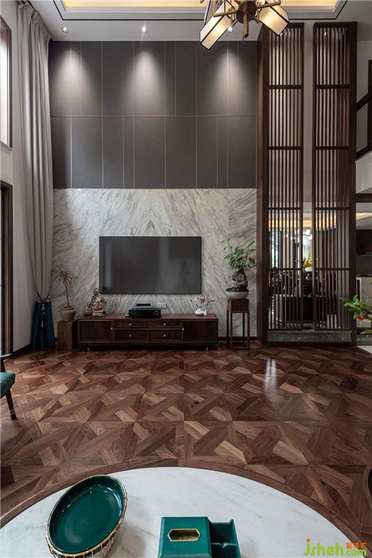 沙發(fā)背景裝置畫,作突出東方筆觸;