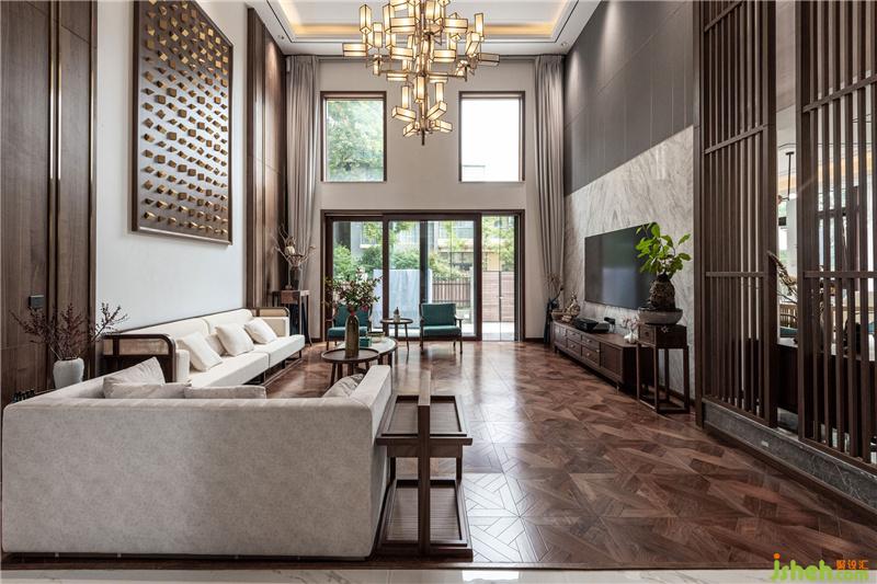 昆明裝修設(shè)計客廳幾何藝術(shù)吊燈與簡潔家具形態(tài),營造空間當(dāng)代美學(xué)格調(diào),