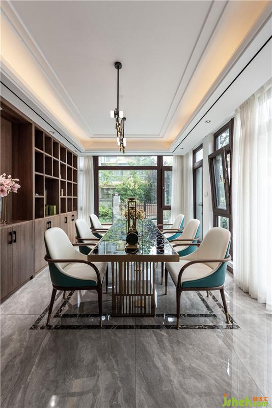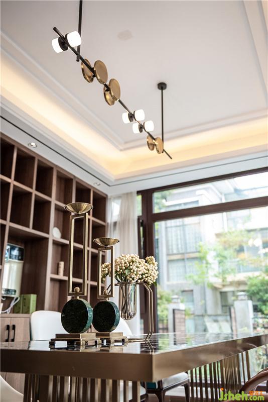 古銅幾何形狀與胡桃木飾面,意旨沉穩(wěn)是空間的主體精神。