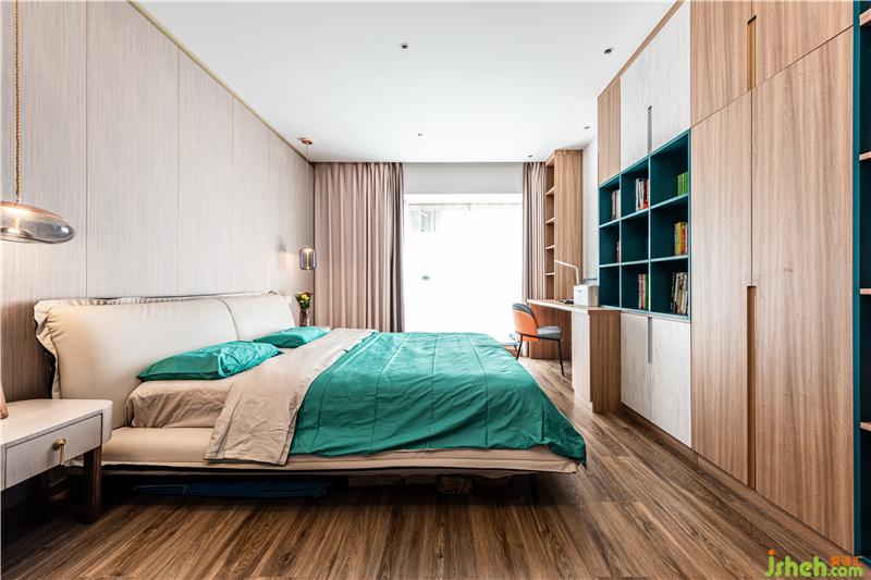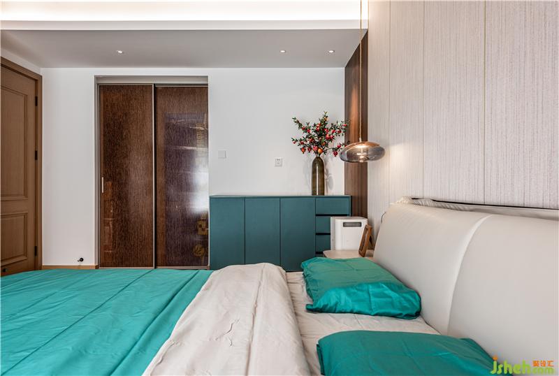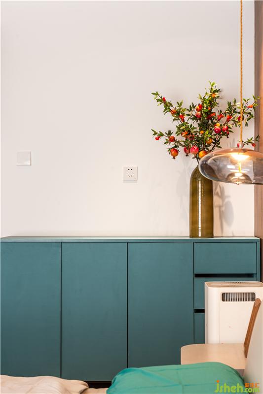 整體設(shè)計(jì)以現(xiàn)代簡(jiǎn)約風(fēng)格為主,在空間色彩搭配中我使用了搶眼的孔雀藍(lán),配以部分橙色家具為點(diǎn)綴,以此凸顯女主的藝術(shù)身份!
