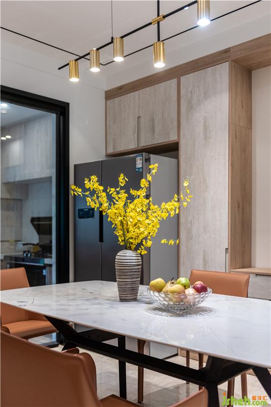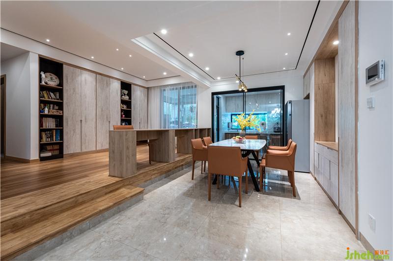 餐廳及開放式吧臺(tái)書桌的設(shè)計(jì),利于學(xué)習(xí),家庭互動(dòng)空間,