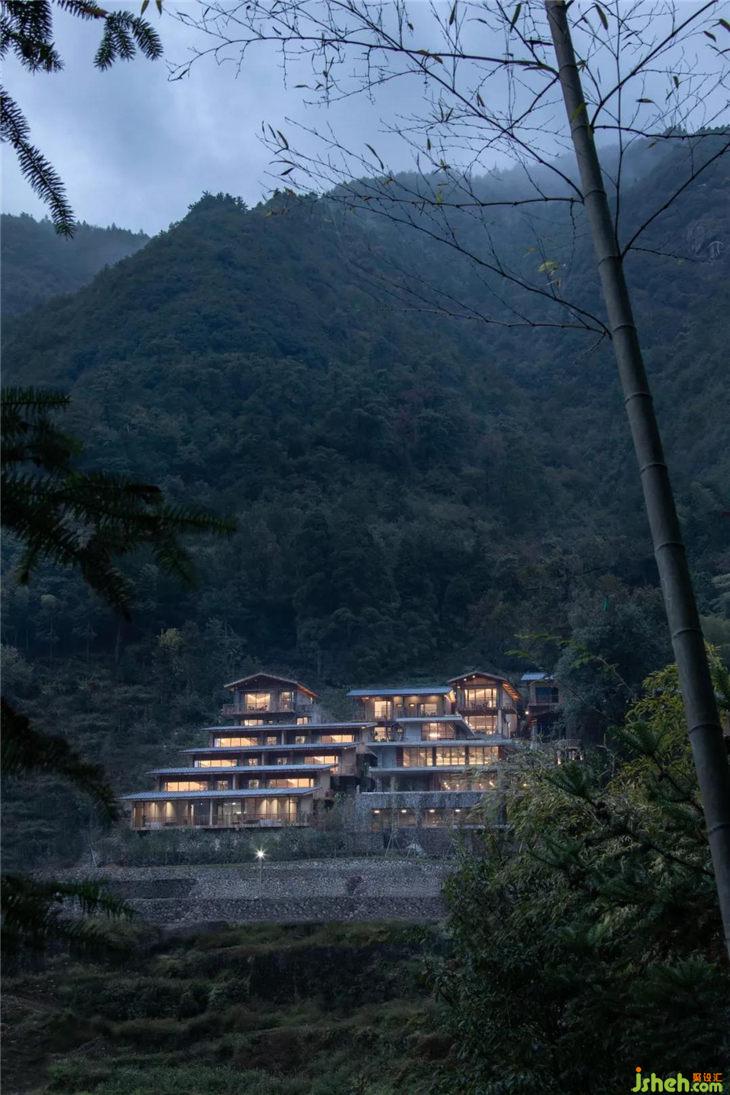 宋代詩人沈晦在《初至松陽》詩中曾這樣描繪松陽:“惟此桃花源,四塞無他虞。”站在民宿的觀景臺俯瞰青山幽谷,會覺得詩中描繪的“桃花源”便是眼前的景象?!爸矣谧匀?,融于山野”是民宿選址的初衷,也是最大的賣點。