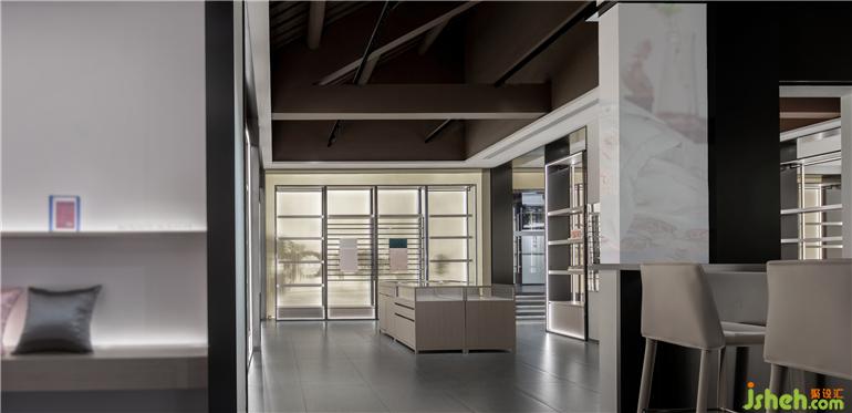 本項目保留了古建筑的韻味,蘇州展廳設(shè)計通過對局部空間的當代處理后,形成具有古建筑韻味下的當代藝術(shù)空間??臻g植入的“光與絲綢”的裝置,是對產(chǎn)品文化,絲綢文化的提煉與表達。突破空間的框架特有的桎梏,通過視覺與觸感,塑造一個理性邏輯的意向空間