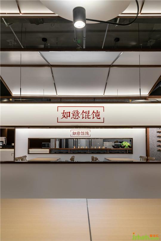 入口處,石磨在麥田里磨著新鮮的麥子,表達(dá)了“如意餛飩”秉持的精選食材原則,“全球優(yōu)質(zhì)高筋小麥”“真空打粉筋道爽滑”是餛飩皮的特點(diǎn)和要求。蘇州餐飲設(shè)計(jì)而墻壁上的柜體便是給準(zhǔn)備包好的餛飩的展示空間,讓客人看得見,吃得著。