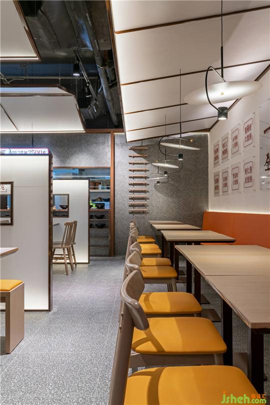 餛飩作為中華傳統(tǒng)美食,早期只是在街邊的草棚下品嘗,為了契合傳統(tǒng)的用餐環(huán)境,迎合大眾對(duì)餐飲空間環(huán)境的要求,蘇州餐飲設(shè)計(jì)在全新的如意餛飩第五代店中,便可在大小錯(cuò)落的屋檐之下覓食。而一行的友人,也可透過朦朧的隔斷互相照應(yīng)。