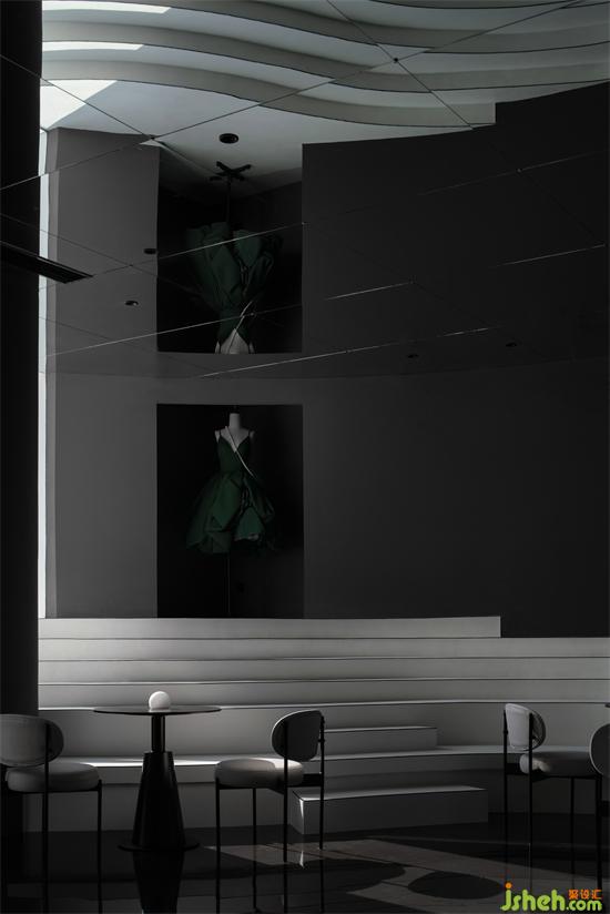 光線以不同的姿態(tài)進入室內(nèi),與深黑色鏡面配合,造就了空間的深度和層次感,通過光與影的交織為其塑造了獨特的空間性格。