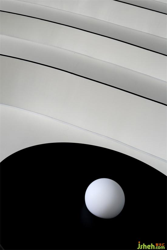 時(shí)尚的秀場無需太多粉飾,冰山臺階被賦予了自然的弧拱造型,簡潔的線條勾勒出冰山切割后的模樣,蜿蜒著向前伸展。黑色線條描摹出臺階的邊界,成為牽引視線的標(biāo)識。