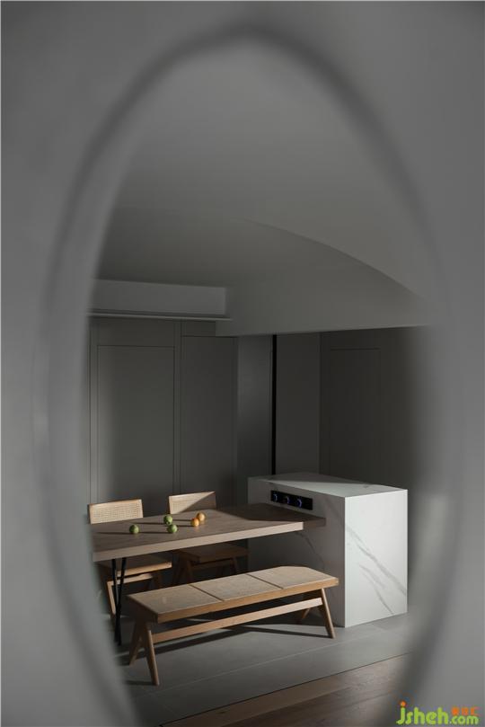 空間原始結構為兩居室空間,客餐廳為長廳,洛陽裝修設計在研究承重結構后,對原始結構進行了大面積的改造。由于客廳及陽臺景色為洛河光景,我們就拆除了一個臥室與客餐廳打通,來增大采光和景觀面。同時,考慮到業(yè)主一人居住,工作日均在單位就餐,只有周末偶爾做一些簡餐,所以我們將中廚和衛(wèi)生間縮小,增大公共空間面積,保留了一間大臥室;而在客廳區(qū)域,我們摒除常規(guī)會客沙發(fā)擺放形式,以地臺結合坐墊靠包的靈活方式,滿足不同場景下的生活格局;在靠陽臺的部分,我們空出大量面積,凸顯空間的開闊性,賦予空間無限可能:女主人可以健身、瑜伽、觀影、看書,坐,臥,行,走,均可達到無拘無束的自由品質空間狀態(tài)。
