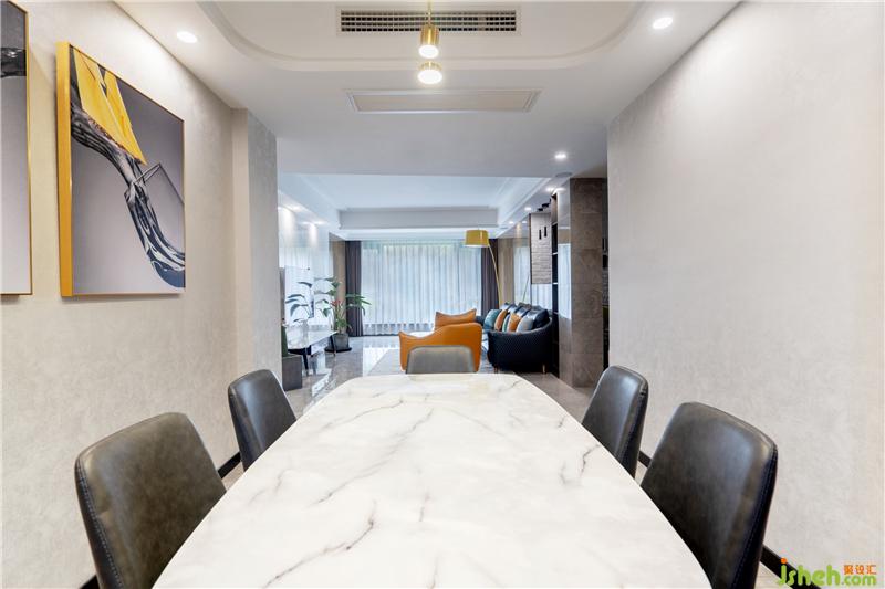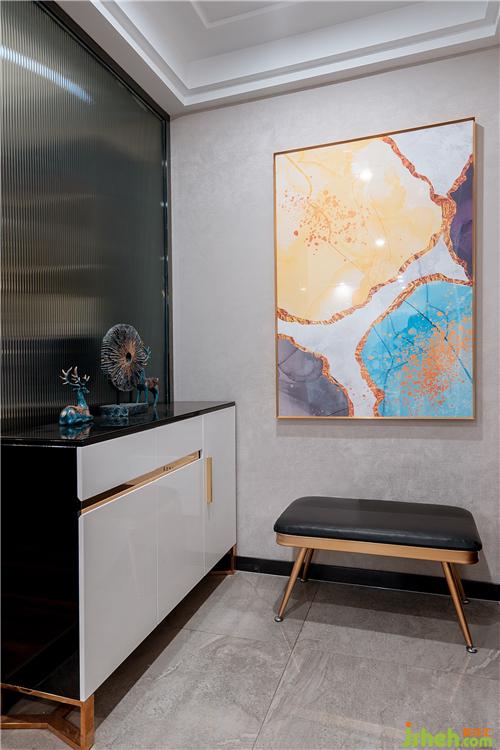 為了摒棄原有戶(hù)型入戶(hù)位置光線(xiàn)較弱的缺點(diǎn),設(shè)計(jì)師把入戶(hù)玄關(guān)后面那個(gè)臥室整體往外擴(kuò),在前端做一個(gè)敞開(kāi)式書(shū)吧,讓整個(gè)玄關(guān)亮起來(lái),整體空間顯得通透明亮。玄關(guān)通過(guò)過(guò)道的穿插有效的把餐廳和客廳分為一左一右,空間不失層次感。入戶(hù)玄關(guān)采用灰色的長(zhǎng)虹玻璃做屏風(fēng),敞開(kāi)式書(shū)吧,書(shū)吧跟客廳之間有個(gè)高吧臺(tái),這樣更加增加了整個(gè)空間的延伸,從而也拉大了客廳聚會(huì)的空間。