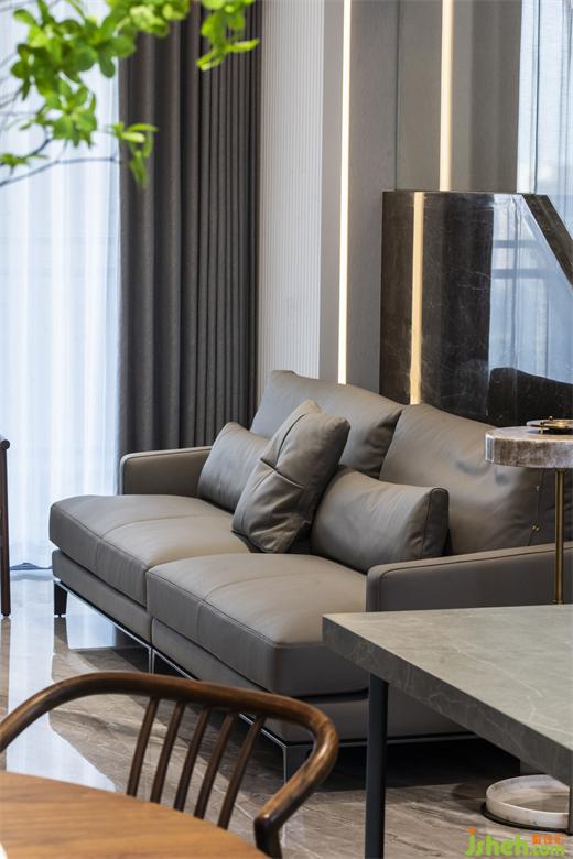 本案金山湖中心裝修設(shè)計(jì)運(yùn)用高級(jí)灰作為空間基調(diào),局部用色大膽,金屬、棉麻、皮革等多種材質(zhì)與不同的設(shè)計(jì)元素組合,以現(xiàn)代藝術(shù)手法,打造一個(gè)簡(jiǎn)約與純粹并存的高品質(zhì)居住空間,體現(xiàn)家居品位與質(zhì)感。