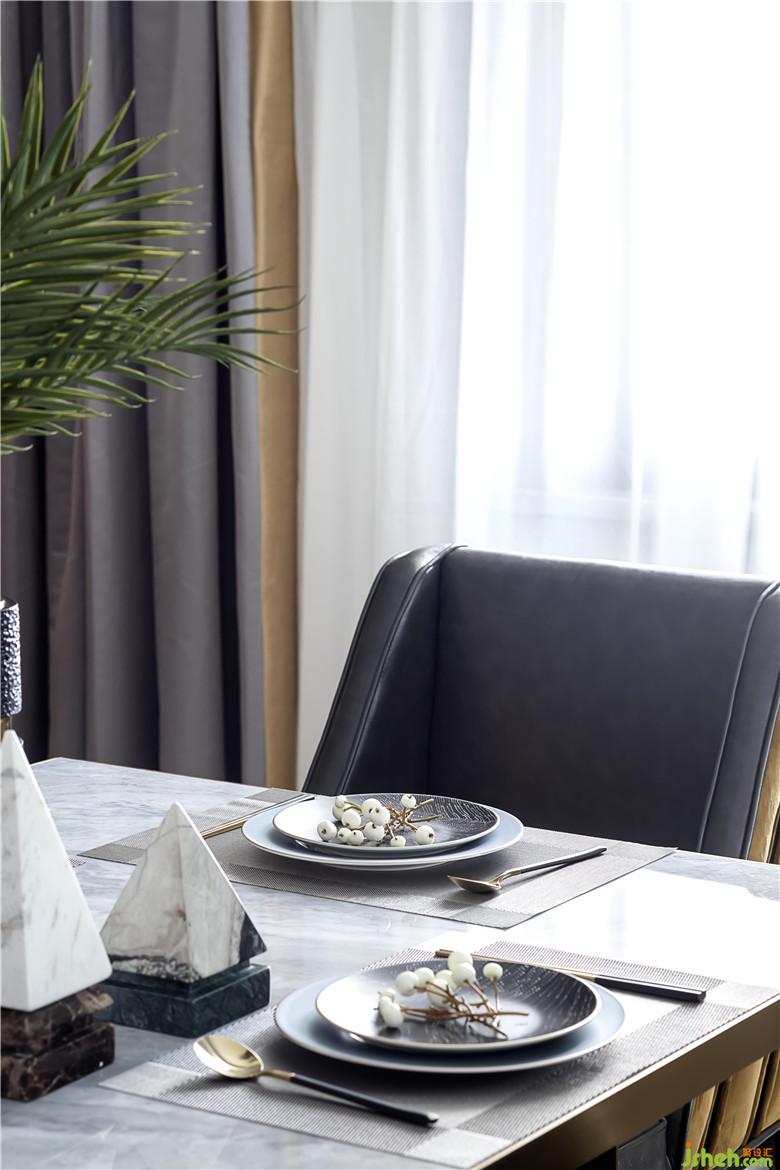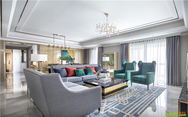 客廳與餐廳共享視覺空間,共同詮釋現(xiàn)代主義的色彩美學。