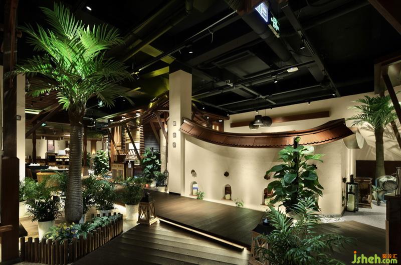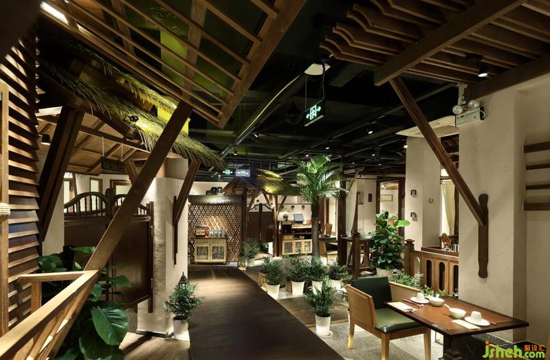 綠色植物點(diǎn)綴其中,原木質(zhì)感的村落營(yíng)造東南亞風(fēng)情本餐廳,開(kāi)敞式設(shè)計(jì),獨(dú)特的東南亞小木屋配合綠植色彩營(yíng)造獨(dú)特的異域風(fēng)情,非常不錯(cuò)的餐廳設(shè)計(jì)!