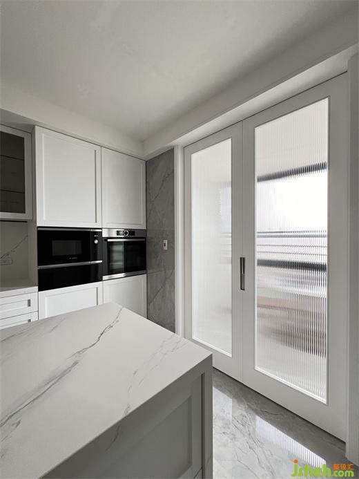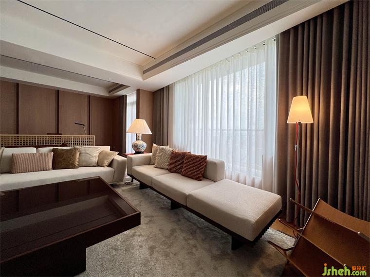在公領(lǐng)域區(qū),將客廳.餐廳.廚房及休息區(qū)等空間,排布在橫向軸線上,營造出空間的景深,也讓雙向空氣陽光能夠流通在每一個角落,廚房二側(cè)的門片設(shè)計,豪宅設(shè)計滿足開放或私密的需求,視覺上也讓整個公領(lǐng)域空間得以無限延展,將二邊窗外風(fēng)景盡收眼底,每當(dāng)黃昏,從窗外撒下的夕陽余暉,照映在室內(nèi)的實木地板上,反映出家的溫暖與舒適。
