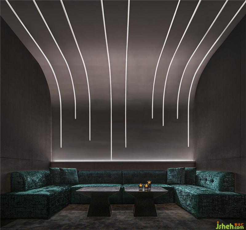會所過道同樣遵循這一原則,透空處理一方面引入光線進入過道,另一方面削弱過道的感覺。會所設(shè)計
