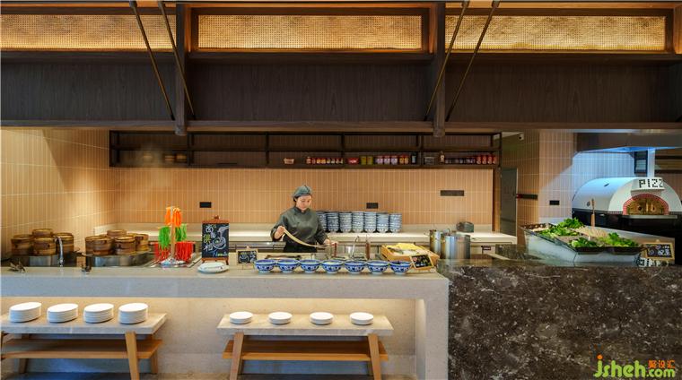 亮點1:下榻酒店接待大堂我們營造一種空間儀式感立刻感受到親切,我們的前臺和休息區(qū)融為一體,為新一代旅行者打造一種全新的入住體驗。位于B棟一層的大堂吧和全日制餐飲吧臺融合一體,餐飲吧臺是社交的中心。這里可提供給旅行者全天候服務,溫馨、充滿活力的空間,力求打造隨時隨地自由享用餐飲空間,利用空間中的柱廊設計可開可合的移動隔斷,作為分隔各個區(qū)域的重要介質,運用到空間各個過渡點,這樣就形成了靈活、多功能的全天開放功能區(qū)。