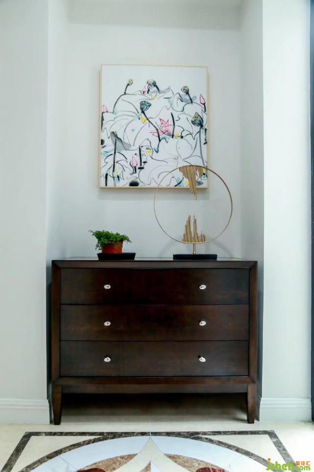 過道展示柜,兼顧收納和美觀,讓過道不再是單調(diào)的過道而是客廳的一個小景。柜子兩邊設(shè)計公司采用隱藏門的形式,使柜子看上去更簡單耐看,踢腳下方鏤空暗藏?zé)魩?,白天是裝飾晚上是夜燈。