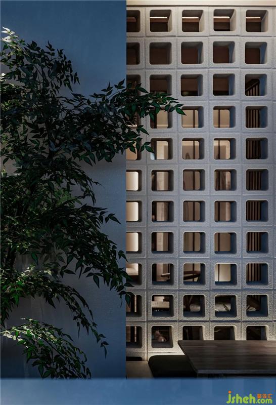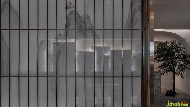 主要材料:水磨石 不銹鋼格柵 空心磚 絹紗 藝術(shù)漆