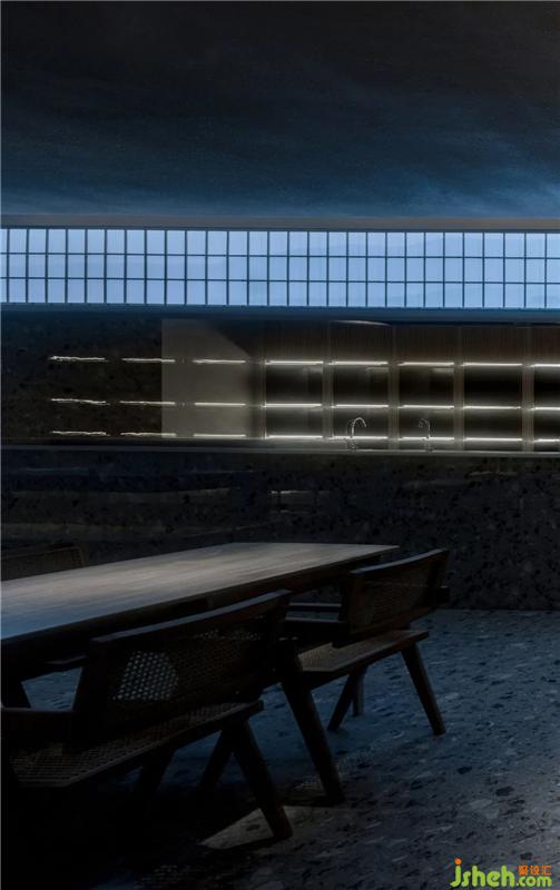 將場(chǎng)景化品茶與商業(yè)空間完美共生,形成洽談?dòng)重S盈的文人精神世界。古人常于自然山水處擇一居所,安放身體與靈魂。但如今,不僅要棲于靜謐,靜坐飲茶看窗外車水馬龍、人來(lái)人往,居于繁華。
