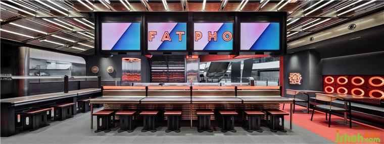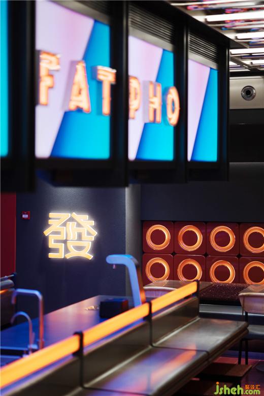 燈箱上循環(huán)播放著品牌的卡通形象,一個戴著斗笠拿著PHO的skater boy。杭州餐廳設(shè)計作為品牌設(shè)計的延展元素,靈動的畫面內(nèi)容讓食客在進餐時與FATPHO大發(fā)品牌建立更深層的聯(lián)結(jié)。