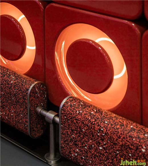幾大體塊之下呈現(xiàn)出物理空間的張弛與力量,迷幻沖撞的光色變化附著在不同形態(tài)上,杭州餐廳設(shè)計奠定了品牌空間的印象基調(diào)。