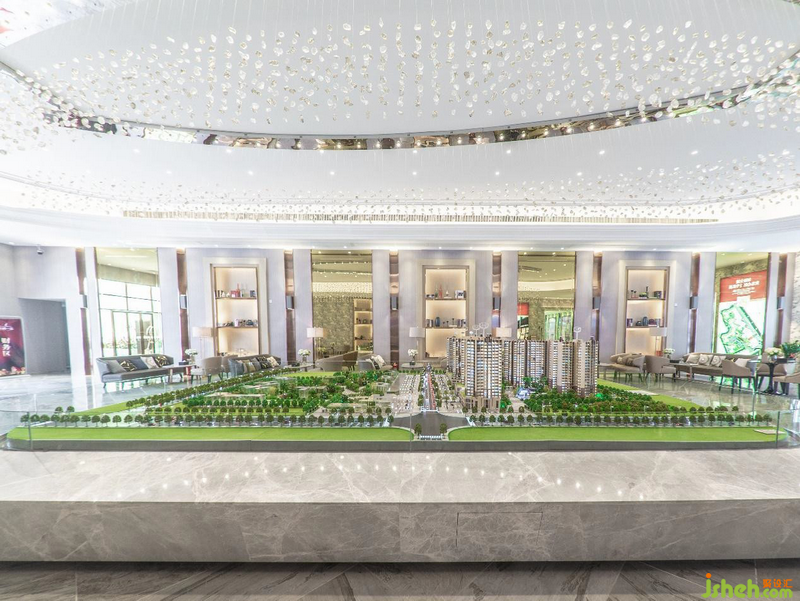 上千顆垂落而下的水晶石匯聚在模型區(qū)上方,如漫天星與辰,點亮空間清與華。