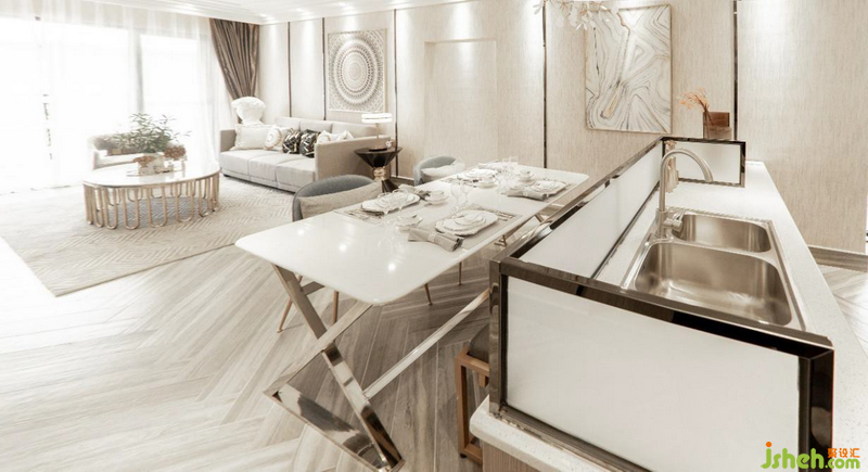 與以往獨立式廚房設計相比,開放式廚房不僅是在為住戶創(chuàng)造寬敞舒適的環(huán)境,也是在增加家人之間的互動交流,讓心與心、人與人彼此貼近,而且,設計師有利用柔和、輕緩色調的材質進行調和,塑造出住戶內心向往的生活狀態(tài)。