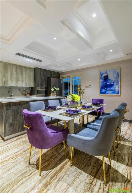 生活中的雅致與浪漫是主人一直推崇的一種生活放式,全房地面采用大理石材質(zhì),石材的光澤填補了本戶型自然采光不足的缺失,墻板的木質(zhì)肌理搭配金色銅條,視覺上恰到好處的營造出精致時尚的優(yōu)雅魅力。裝修公司