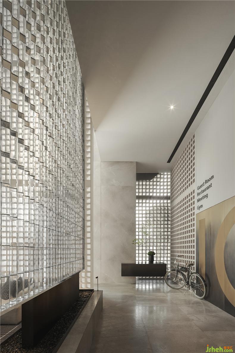 大堂的設(shè)計靈感源于布蕾根茨美術(shù)館,設(shè)計擭取彼得·卒姆托的建筑藝術(shù)語言,酒店設(shè)計以四堵厚墻搭建起內(nèi)部的輪廓,最大限度引入自然光線的同時,這種結(jié)構(gòu)為空間的動線布局、功能分區(qū)帶來了更大的自由度與可塑性