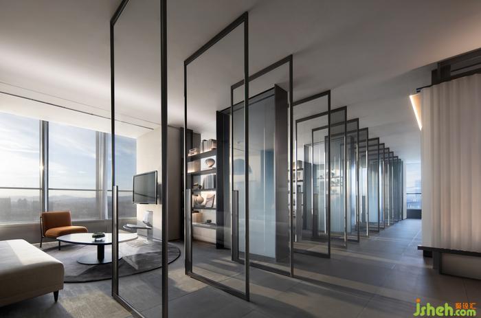 自然光在洽談間玻璃門窗的平衡與穩(wěn)定之下進(jìn)入,