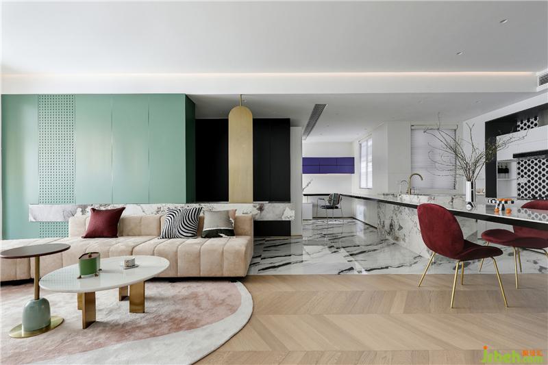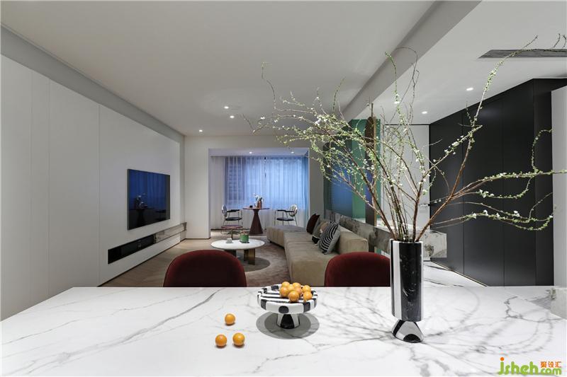 本案以色彩為線索,在現(xiàn)代主義美學(xué)基礎(chǔ)上,以雅白為背景,融入繽紛色彩,成就本案的獨(dú)特藝術(shù)風(fēng)格。春暖花開陽(yáng)光系的黃,秋日余暉浪漫風(fēng)的粉,生機(jī)勃發(fā)熱帶雨林式的綠,深邃明凈大海般的藍(lán),這些最接近自然的顏色,搬進(jìn)居家環(huán)境之中,回應(yīng)著人們對(duì)于都市自在生活的向往和期盼。