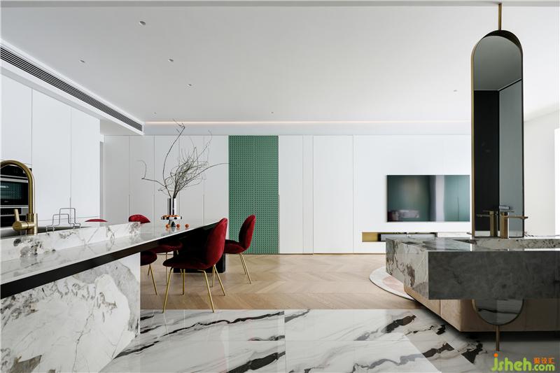 光與影的完美交融,白調(diào)與綠調(diào)的互相映襯,是空間與意境的詩(shī)意體驗(yàn),是藝術(shù)與生活的自然鏈接。在休閑區(qū)域的設(shè)計(jì)中,我們以現(xiàn)代主義美學(xué)手法作思維主線,木地板、絲絨沙發(fā)龍巖裝修設(shè)計(jì)、大理石茶幾等不同材料融合運(yùn)用,帶來(lái)極具飽滿的美感。軟硬材質(zhì)的合理配比,冷暖色調(diào)的適用,每一個(gè)節(jié)點(diǎn)我們都為之感受自然帶來(lái)的舒適與安逸。