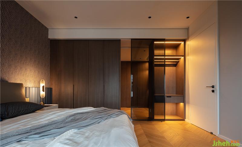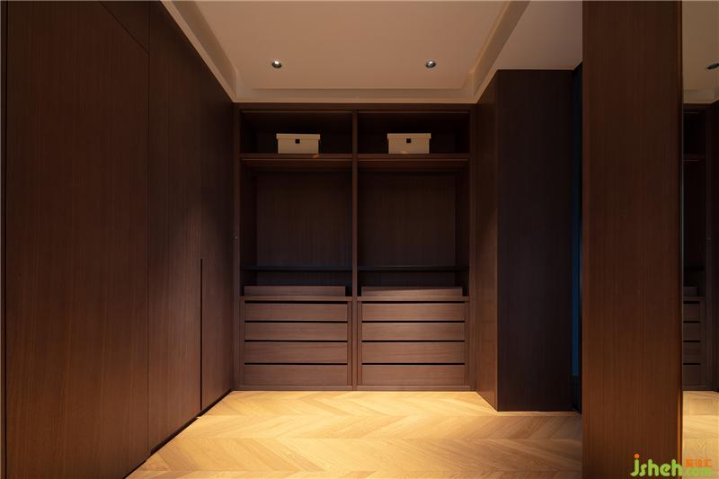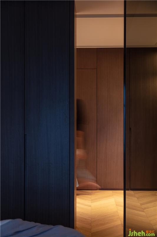 推門而入,頓至婉轉(zhuǎn)。主臥空間內(nèi)藏的更衣室,延續(xù)主臥典雅淺淡的基調(diào),摒棄了繁冗復(fù)雜的裝飾,刪繁去簡,原木的質(zhì)感,宛如引自然之氣入室,木紋的氣息是時間的記憶,蘊含了大道至簡的美學之道。