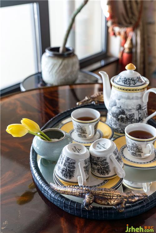在茶室墻紙的材質(zhì)和表現(xiàn)形式上,沒有選擇常規(guī)的墻紙,客服重重困難力求多元化,材質(zhì)是宣紙,圖案都是純手繪,描述的是清末廣州十三行外銷墻紙上的清末中國人生活圖,呈現(xiàn)出中西文化相互交融的一段歷史氛圍。