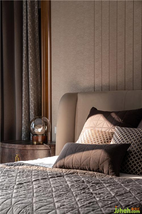 針對(duì)主臥的設(shè)計(jì),豪宅裝修設(shè)計(jì)來了個(gè)反轉(zhuǎn),沒有延續(xù)外面客廳或餐廳的那種濃烈感,女主人希望自己的家整體還是呈現(xiàn)多元化,燈具造型和地毯的幾何紋理讓主臥營造出一種意大利的簡約輕奢風(fēng)。女主人和男主人的生活,有需要每日親手打理、那些淳樸自然的部分,也有科技簡化了日常的部分。傳統(tǒng)繁瑣與現(xiàn)代智能簡便,兩種生活狀態(tài)融合于家中,映襯出夫婦倆各異的性格與其平衡。