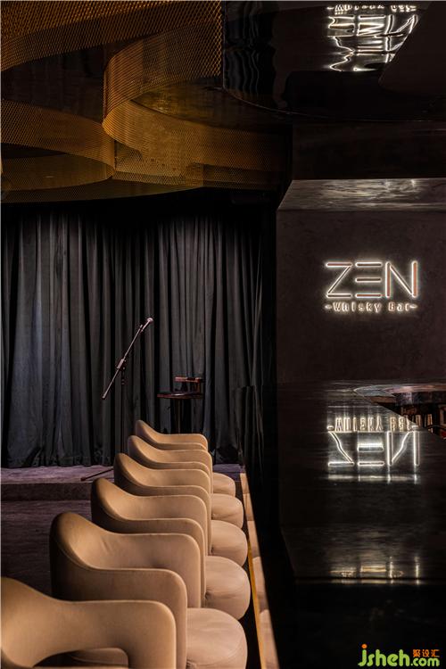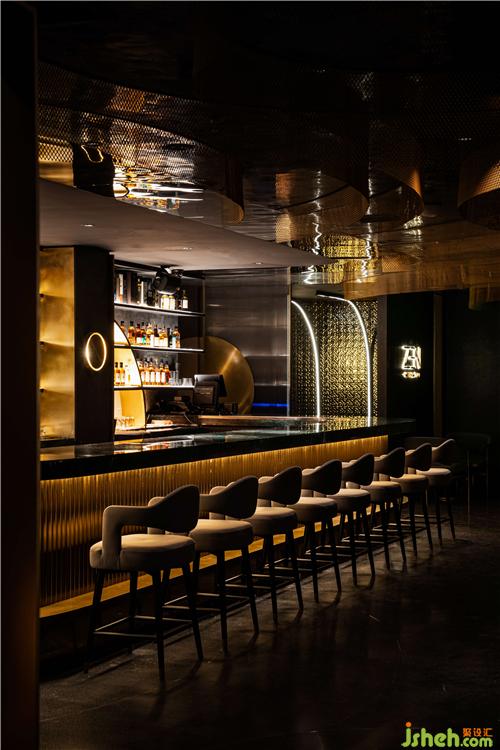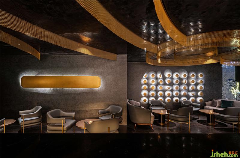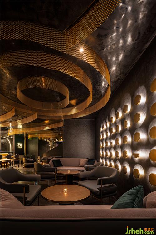 無碰撞!不融合!沒有張揚的顏色輔助,唯有弧形點綴,直擊冷硬的墻體,大片揮灑的波紋墻面,予厚重墻體一絲低調(diào)質(zhì)感?;疑\罩的基底南京酒吧設(shè)計,石材被粗獷地嵌入墻面,光影折射下,石頭“撞擊”地面,一石激起千層浪,暗流涌動,整個空間泛起層層漣漪,抬頭即見多種空間變化。