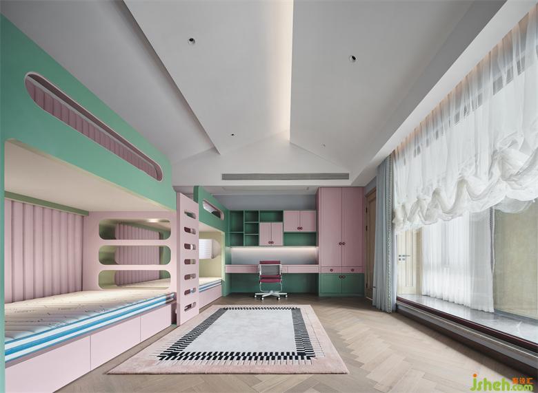 小小的繽紛空間,便能為孩子支起一片歡樂。雙層床設(shè)計,下層用來休憩,上層則足夠孩子們玩鬧。在這間充滿童趣的臥室,父母和寶貝一起歡樂,美好的親子時光總讓人心馳神往。