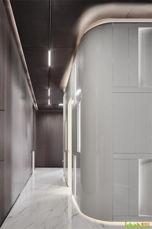 穿過(guò)前院,拾階而上,遇見(jiàn)一隅讓人重獲力量的安適,莫爾說(shuō):走遍天涯覓不到自己所需的人,回到家就發(fā)現(xiàn)它了。進(jìn)入門(mén)廳,獨(dú)棟別墅設(shè)計(jì)環(huán)形藝術(shù)裝置“白盒子”相迎,純粹且融洽的幾抹燈光,便令居者有洗盡鉛華,回歸生活之感。