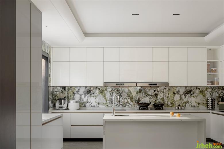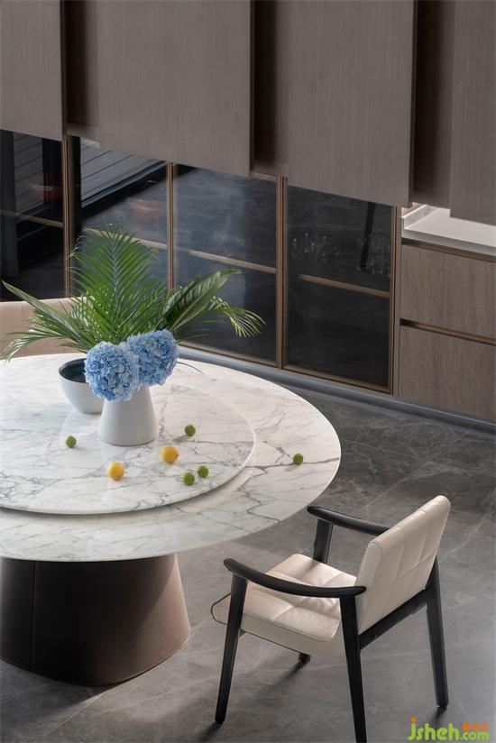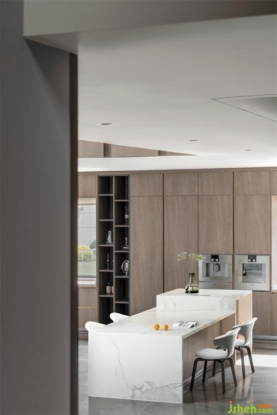 任何家宅,皆需回歸一日三餐。權(quán)衡三代人飲食需求后,別墅設(shè)計中我們?nèi)谌胫形麟p廚房。L型中式雙動線廚房集洗、切、炒、煮黃金動線于一體,讓整個烹飪過程一氣呵成。西廚島臺,無論煮咖啡、制作簡餐、烘焙均可滿足。