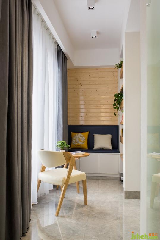 在功能分區(qū)這一塊,我們未對功能進行明顯的分割,進門是一個非常開放互動的公共空間,光線可以穿透進室內(nèi)的每一角落,在色彩的運用中,配以清新靚麗的軟裝和生機勃勃的綠植更讓整個空間充滿無限的想象.