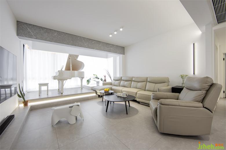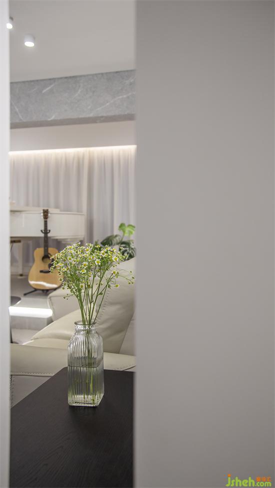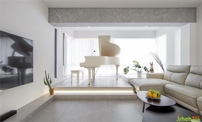 客廳:通過(guò)對(duì)原始對(duì)立墻的刻意外延,加大了客廳的橫向長(zhǎng)度,也支撐起了原始頂梁的視覺(jué)力構(gòu)。窗邊“虛化”的演繹臺(tái),詮釋著女主對(duì)鋼琴的特殊情感。水室內(nèi)設(shè)計(jì)泥灰的頂梁是個(gè)性化地存在,切開(kāi)了舞臺(tái)與觀眾席的區(qū)隔。整個(gè)空間有高有低,有盛開(kāi),也有靜默。