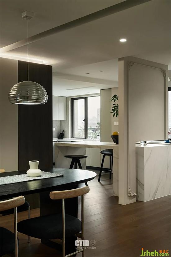 家裝設(shè)計(jì)將部分格局拆除重新規(guī)劃,以獲得全新的空間體驗(yàn)。原客房打通做成開放式廚房,讓使用空間更開闊通透。擴(kuò)大空間增加儲(chǔ)物機(jī)能,實(shí)現(xiàn)廚房自由的同時(shí),也滿足了對(duì)于烹飪時(shí)裝修互動(dòng)性的需求。家就是要充滿“人間煙火氣”。