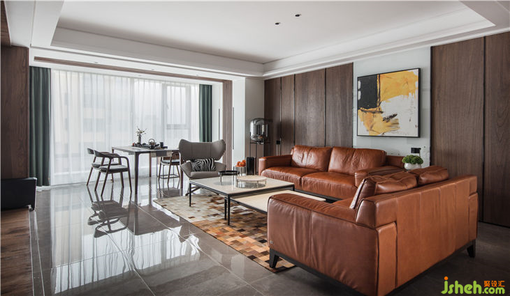 沙發(fā)背景采用大面積的木飾面設(shè)計,中間鑲嵌一塊超白玻給人以一種溫潤的氛圍,軟硬結(jié)合,無主燈的設(shè)計讓整個空間顯得干凈整潔。選擇皮質(zhì)沙發(fā),就是喜歡其硬朗的材質(zhì),雖有微微的褶皺,顯得不是那么的完美,但這就是生活的樣子。