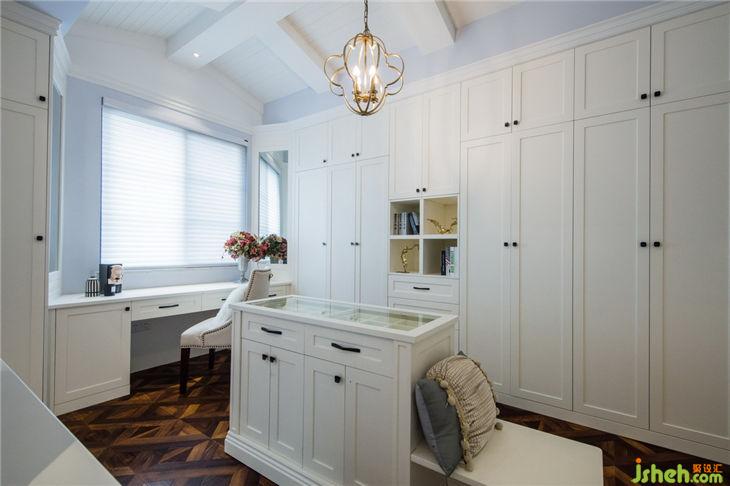 臥室與開放式衣帽間相結(jié)合,不僅通透了整個(gè)空間,且進(jìn)一步提升采光與通風(fēng)。深咖色的地板與亞光白的柜子形體簡約且不失質(zhì)感,帶來的不只是視覺上的素雅輕奢,更有著觸覺上的細(xì)膩柔和、親切、與自然舒適。整體衣柜外加中島儲物格兼具實(shí)用性與美觀性,設(shè)計(jì)師在尺度比例、材質(zhì)工藝的選用上都進(jìn)行了細(xì)致充分的考量,有著干練、和恰如其分的極致感。
