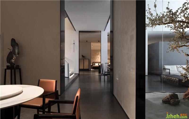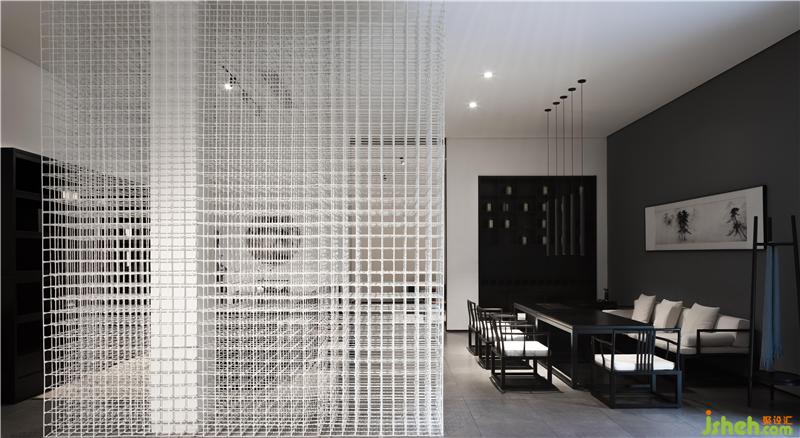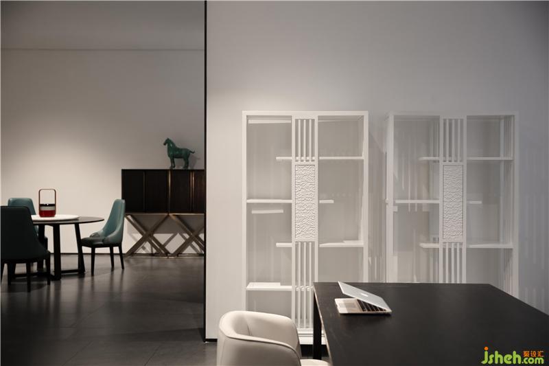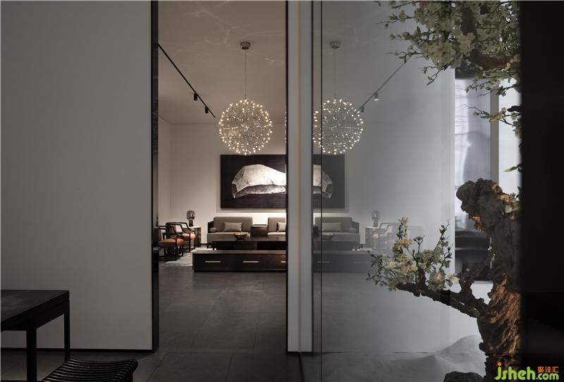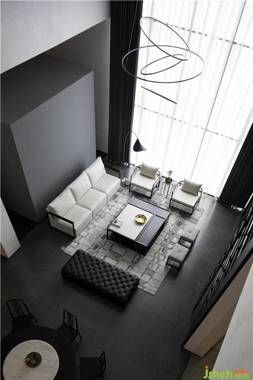 震撼的中庭挑高區(qū)域盈滿廣袤、純凈而安定的靜謐力量,一覽無疑,氣質(zhì)涌現(xiàn),將心放緩下來。上空大型圓形吊燈,高低錯(cuò)落中糅合出空間的比例之美。如雕塑般美感的白色鋼板樓梯連接上去空間,穿插于黑色空間中,用帶有邏輯的切割梳理了異材質(zhì)的沖突、重新搓揉空間的姿態(tài)。傳統(tǒng)濃重的商業(yè)氛圍于此得以弱化,在韻白的世界中打磨至美生活質(zhì)地。舍棄過多的裝飾造型,試圖利用黑白材質(zhì)的「本質(zhì)意象」去體現(xiàn)一個(gè)空間的風(fēng)格及層次。只需身在場域之中,便能體會(huì)其柔軟、強(qiáng)烈、安靜、亦或神秘;材質(zhì)線條于無形中界定了空間,形塑出一個(gè)全新、當(dāng)代的空間想象。